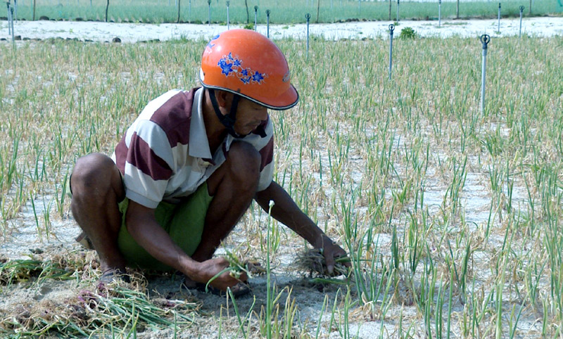 “Không nhổ về thì tiếc, nhổ về chỉ ngày trước ngày sau là hành thối rữa do ngấm nước mưa, tư thương không mua, cho không ai lấy nên chỉ đem ra biển đổ”, ông Khanh buồn rầu nói.